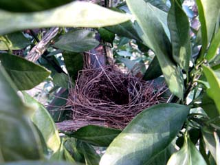 現在、毎日ミカンの木を 剪定しております。 毎年、剪定中に2、3個の 鳥の巣を見つけますが いつも巣を作っている場所に 感心させられます。 写真を撮る時には 邪魔な枝を避けてるので はっきりと巣が見えますが ちょっと離れると どこにあるのか全く分かりません。 誰に教えてもらうワケでもないのに やっぱ自然てスゴイ!!