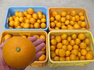 なんか今年は表年のようで どの枝にもご覧のように鈴なりです。 ウチに収穫できる八朔は コノ木しかないのですが 樹齢何年だろう?というくらいの大木で 2連のハシゴでも届かない所もあって 収穫はいつも命がけです。 低農薬なので、あまりキレイではありませんが 味は保証します。 少しですが一般販売しますので 是非この機会にお試し下さい。