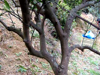 珍しいモノを見つけました! コレ、何が珍しいかわかりますか? ご覧になるとわかりますネ! ミカンの木が輪になってるのです。 上部の又になったところに 別の枝が挟まったまま 同化してしまったようです。 細い枝では見たことありますが ここまで太い木で輪になってるのは ホント珍しいです。 なんで今まで気付かなかったんだろう? この木が枯れたら 記念に取っておこう!