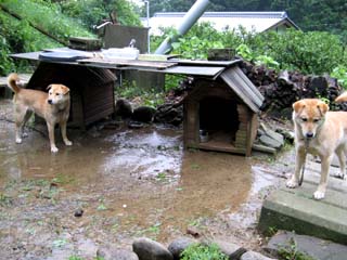 ある程度、雨は降るという 予報だったのですが まさか、こんな大雨になるとは!! 昼過ぎに買い物に出かける時には 大したことなかったのですが 1時間ほど経って帰ってみると 谷の水が溢れんばかりに! コリャ大変と犬小屋を見に行ってみると 床の所まで水が来ていて 「助けてくれぇ〜!」と鳴きながら 愛犬がしがみついてきました。 少しの間避難していると雨も小降りになって これは、もう水が引いた状態なのですが ヒドイ時はココ一面川になってました。 夜中だったら危なかったなぁ〜!