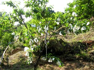 桃オーナーの皆様。 実の大きいものは もうテニスボールくらいになってます。 ということで、いよいよ実に 袋をかける時期がやってまいりました。 早生の実から順番にかけていってます。 実自体は昨年より数も多く ここまでは出来もいい感じですが この先、台風などどうなるかわかりません。 安心はできませんが、お楽しみに!