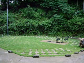 以前、庭の芝生を敷き終わった時に 報告しましたが、 その時は芝生も枯れた状態でした。 最近の雨で敷いた高麗芝も芽を出し 碁盤の目の土の方に撒いた洋芝の種の芽も かなり出て、だいぶ生え揃ってきました。 来年の今頃には二つの芝が混生して 冬でも競馬場のように 緑の芝が生え揃っているようにしたいものです。 別に馬を飼う訳じゃありませんが…。