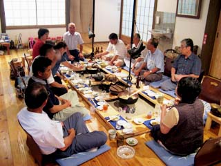 先日、第一回の、いわゆる設立の会を ウチで開催していただきました。 というのも、この会のメンバーの中に ウチの宿の白壁の漆喰を塗っていただいた 左官の方がいらっしゃったからです。 仕事や趣味で石に興味のある方たちで 総勢二十数名いらっしゃるようですが 今回は12名の参加でした。 普段、宴会は囲炉裏を囲むため 10名までしか受けないのですが 宿にかかわりのある方の紹介なので お受けする事にしました。 でもさすがに、これが限界です!