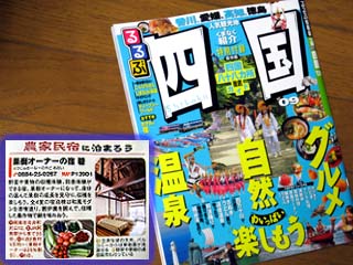 といことで 今、発売中の「るるぶ四国2009」に 掲載されてます。 「おすすめ!徳島の宿」 という5軒の宿の中に入ってます! 徳島だけでなく四国4県の情報が たくさん網羅されてますので 皆さん買って見て下さいネ! 旅行会社が絡んでいる雑誌だし 宿泊客が増えてくれるといいんだけどなぁ〜。