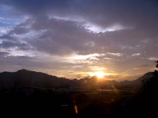 ではありません朝陽です。 昨日までの濃い霧もなく 朝は、まあまあの天気でしたが お昼には雷雨となりました。 真夏独特の不安定な天気が続いています。 これは5:30頃の写真なのですが 昨日から早起きして草刈りしてます。 嫁が早く起きて母の野菜畑を手伝いに行くので それに刺激されて早く起きてみたのですが 昼間の暑い時間に作業するより 全然楽なので早朝シフトに切り換えました。 でも朝、起きるときはツラいんだよなぁ〜!