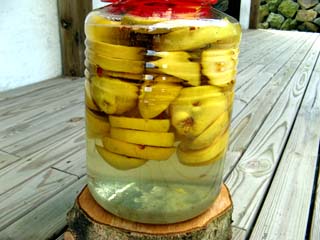 今年はカリンが10個ほど収穫できたので カリン酒にしました。 生食はできないので果実酒かシロップ くらいにしかできないカリンですが ノドが痛くなった時なんかには 効果があるかな?という感じです。 あんまり「効果がある!」なんて言い切って 薬事法に引っかかっても困るんで…。 漬け方もイロイロあるようですが ウチは一度沸騰した、お湯で煮てから 輪切りにします。以前、生のまま漬けたら 白いカビのようなものが浮いてきて ダメになってしまったので 殺菌とアク取りの為に煮るようにしてます。 あと半年もすれば飲み頃だよ〜ん!