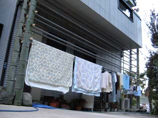 設置完了しました。 今まで1列だったのが 2列になってるのがわかるでしょうか? この棚だけで単純に 今までの倍は吊れるようになりました。 でも今年は台風で 少し実を落とされてしまったので この棚だけで足りるかも? 早くも母の物干しになってますけど…。