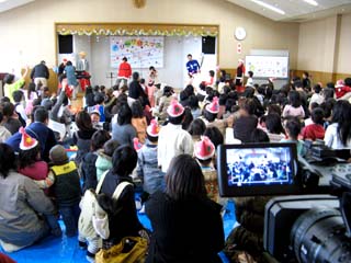 ケーブルテレビの撮影に行ってきました。 こんなクリスマス会というのもあるんだな! という感じで以前運動会の撮影にも行った 神崎幼稚園のクリスマス表現会なるものを 撮影してきました。 普通、幼稚園のこういう会は園内の広間とか 体育館とか地元の集会所や公民館などで 行なわれるものですが さすが私立の大幼稚園となると規模が違います。 1000名以上収容できる大ホールを借り切っての 発表会なのです。 こんな大きなホールで人は集まるのか? と思った私がバカでした。 なんと自由席は座れないくらいの人出で 自前のデジカメとビデオカメラを持った保護者で 会場は熱気に溢れていました。 こういう会を見ていると子供の扱いが 大変だというのがよくわかります。 人のいないリハーサルなんかでは出来ていても 大勢の観客を前に泣き出す子、ふてくされる子 服を脱ぎだす子や、ひたすらチンチンを 触ってる子など、まったく予測不可能な子たちです。 そんな園児を巧みに操る先生たちに頭が下がります。