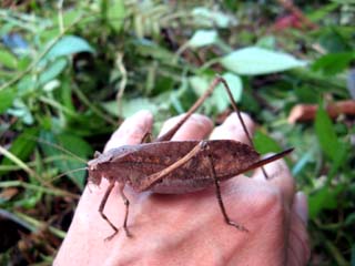 ウチの畑のウマオイ?は こんな手のひらサイズです! 草刈り機で事故に遭うモノもいれば こうして写真に収められて 安全な場所に逃がしてもらえるのも。 雑草はいっぱい食べていいから 大事な野菜の葉は食べないでネ!